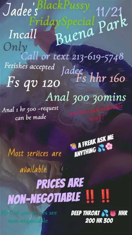 HEY BABES IM AVAILABLE 11/21 For Incall -INCALL ONLY LOCALLY Gardena next to KNOTT'S CALL ME FOR INQURIES ON DONATIONS most to all services available Donations are non-negotiable. Silky Milky Wet clean tight pussy call me im Available inquire now